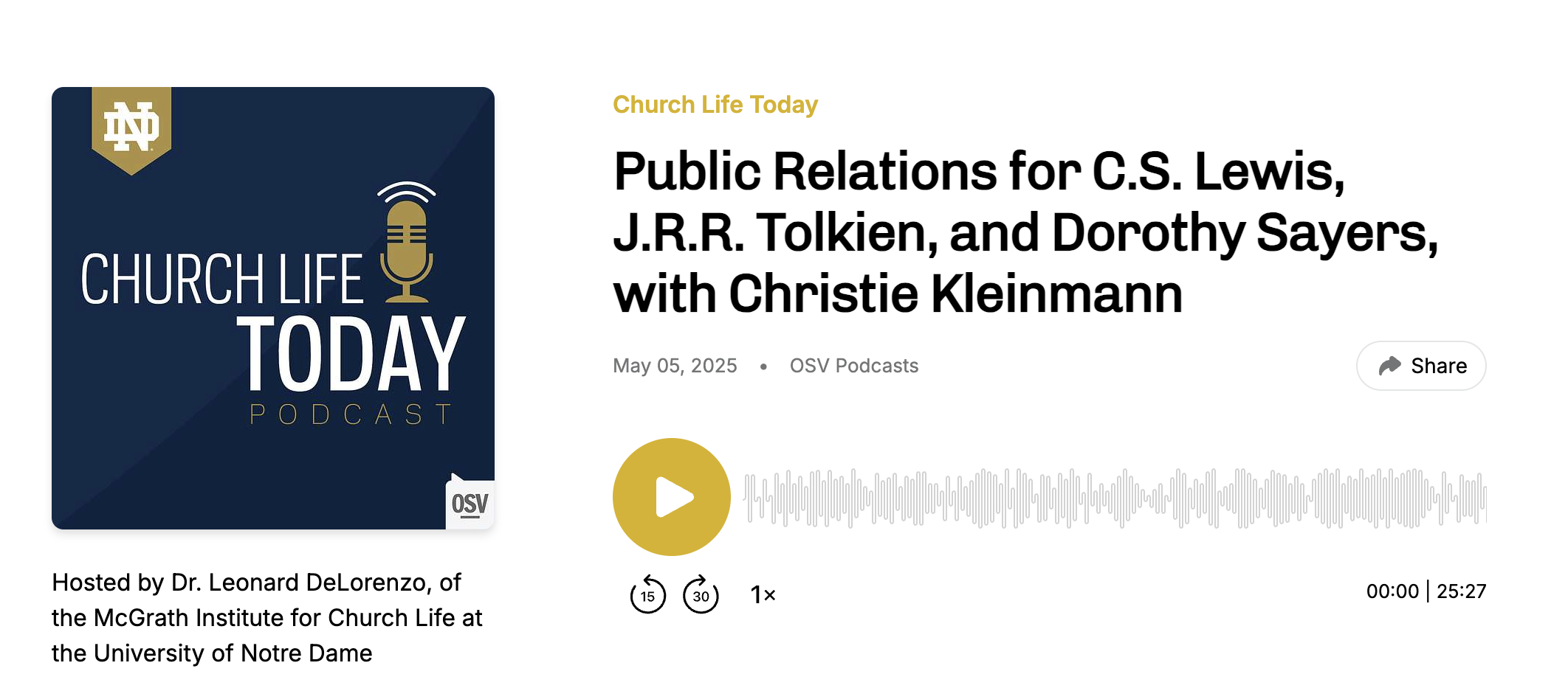 Dr. Kleinmann joined Dr. Lenny DeLorenzo on the Church Life Today podcast to talk about the project of her course, the relevance of the Inklings, and the creativity of her students. You can listen to the podcast here!